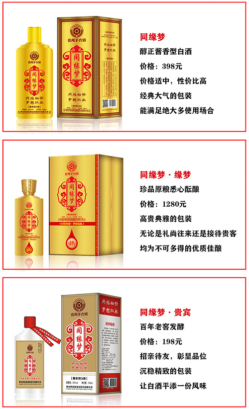 再加上茅台镇本地独特的红缨高粱,配以美酒河丰富矿物质水源,经专属老窖酿造,从而保证了“同缘梦”系列酒品的天然资源与上乘品质。