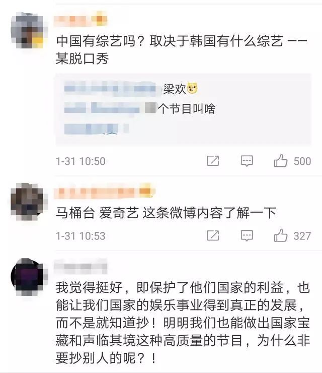 李东燮表示,“中国正在(文化产品和音乐知财产权上)积累经验,追赶着韩国”,希望通过这次的法案,以多部门协作方式解决问题。 立法剑指中国,却被中国网友叫好 其实,上述被韩国方面指出的“抄袭”、“山寨”和“盗版”的中国节目,不少已经被中国网友在各大网络平台上“扒皮”过了。